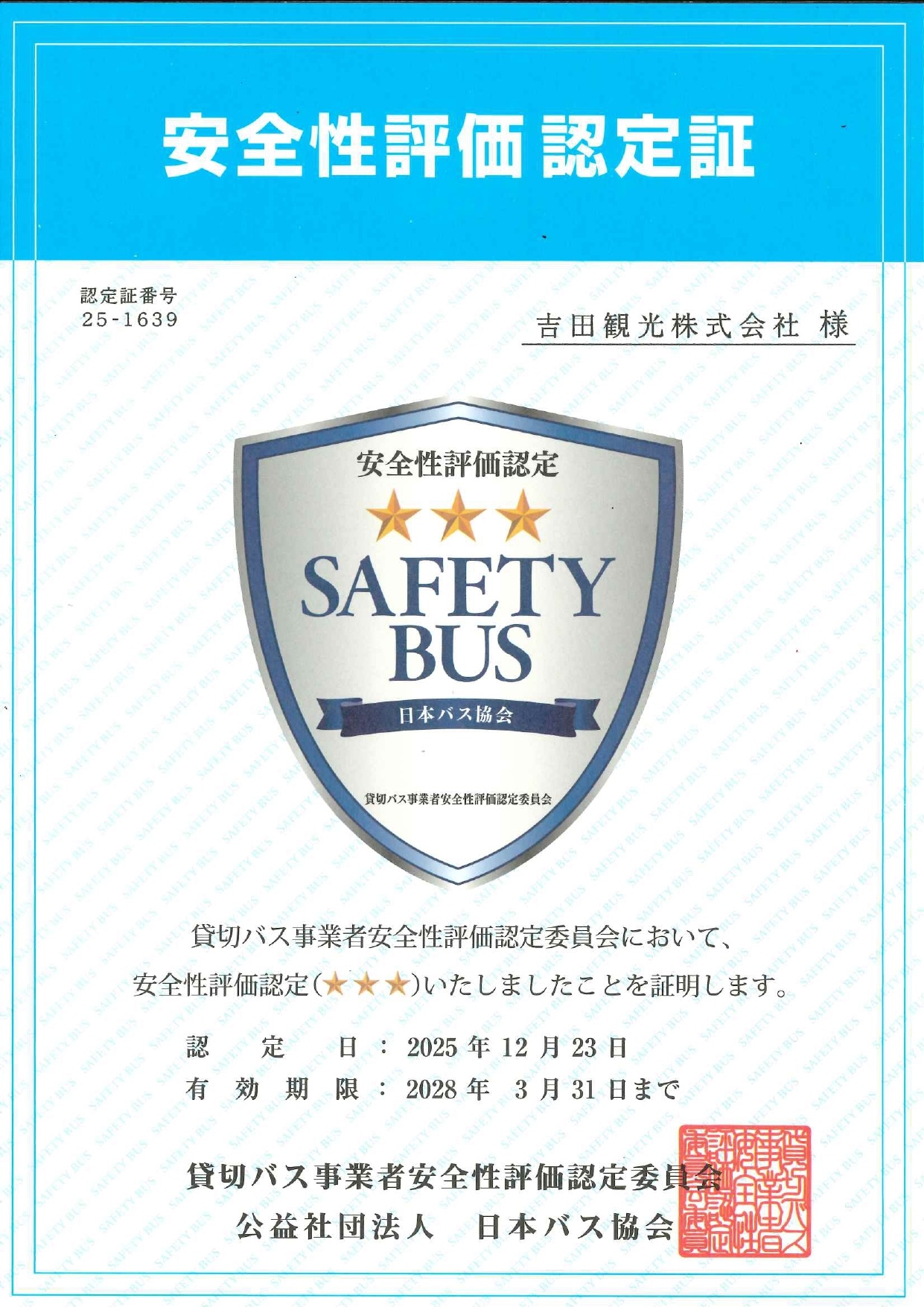 貸切バス事業者安全性評価認定制度は、貸切バス事業者の安全性や安全の確保に向けた取組状況を評価し、認定・公表することで、貸切バスの利用者や旅行会社がより安全性の高い貸切バス事業者を選択しやすくするとともに、本制度の実施を通じ、貸切バス事業者の安全性の確保に向けた意識の向上や取り組みの促進を図り、より安全な貸切バスサービスの提供に寄与することを目的としています。